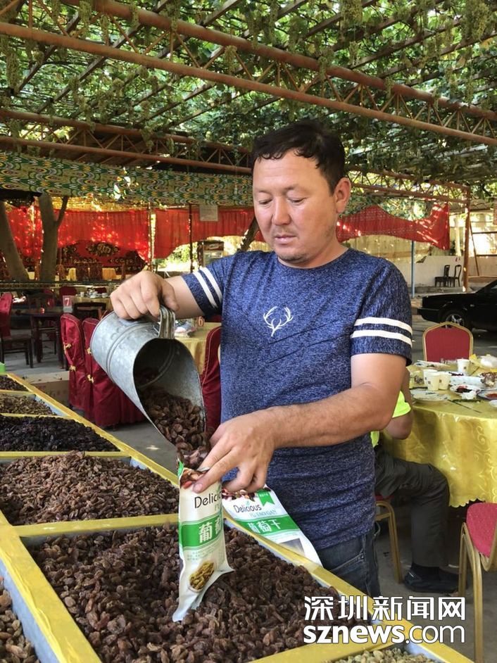 維族老鄉(xiāng)告訴我們,葡萄干的制作有三種方法:太陽曬干、樹上風(fēng)干、土房晾干。趙春麗攝