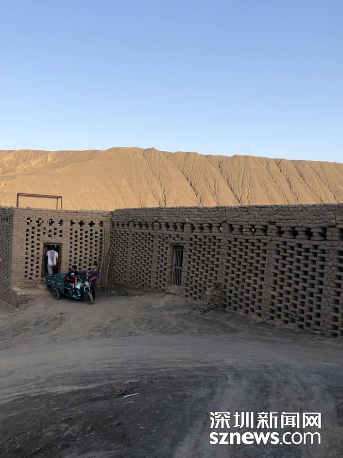 ??? ?在葡萄溝,隨處都可見到土磚砌成的鏤空方格子土屋,構(gòu)成了當?shù)匾坏廓毺氐娘L景,原來這是專門用來晾葡萄干的場地。 趙春麗攝
