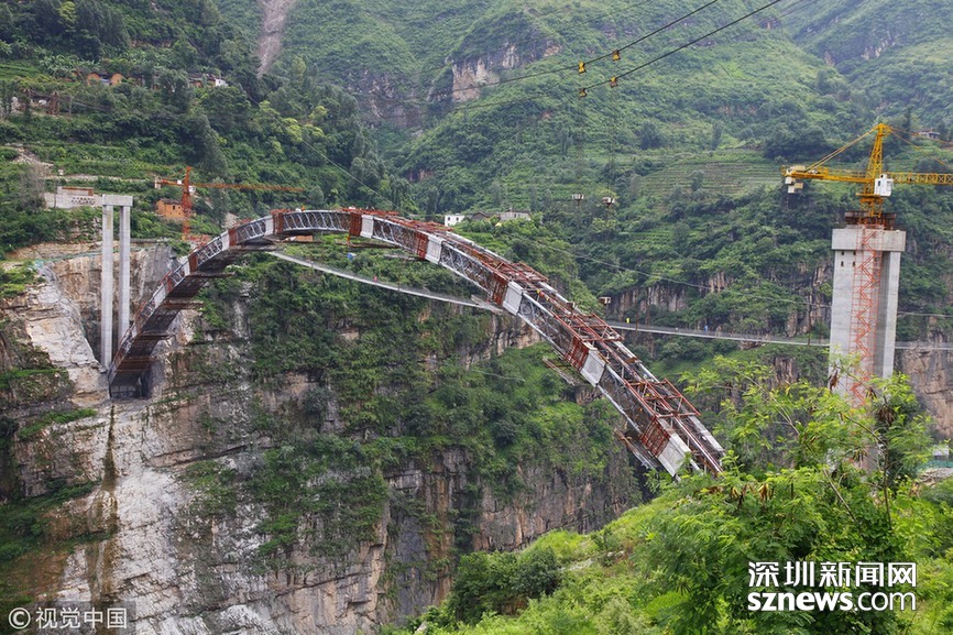 ??? 深圳新聞網(wǎng)訊? 畢都高速公路北盤(pán)江大橋是杭瑞高速公路畢都段的控制性工程,位于貴州省和云南省交界處,由貴州省和云南省共建。該橋橋面至江面高差達(dá) 565 米,成為目前世界第一高橋。主橋?yàn)殇撹炝盒崩瓨?,主?720 米,目前位居同類(lèi)型橋梁2016 年12 月 29 日正式通車(chē)。