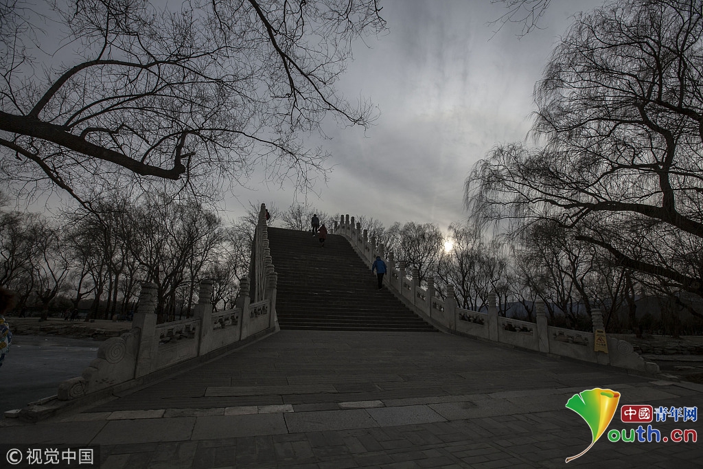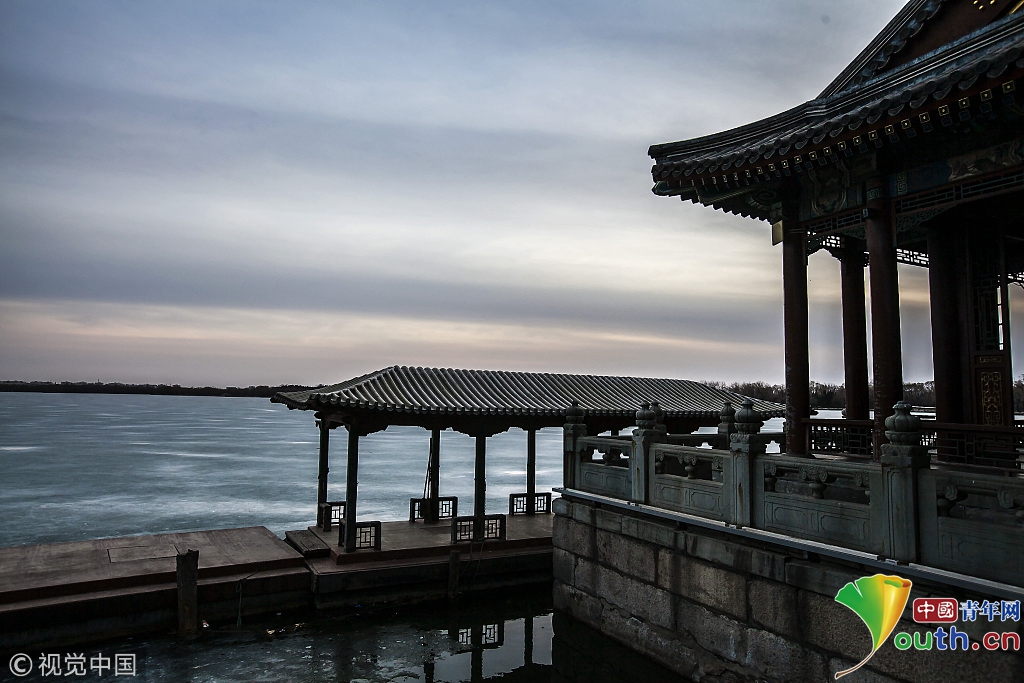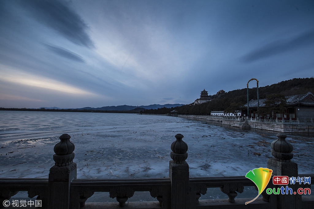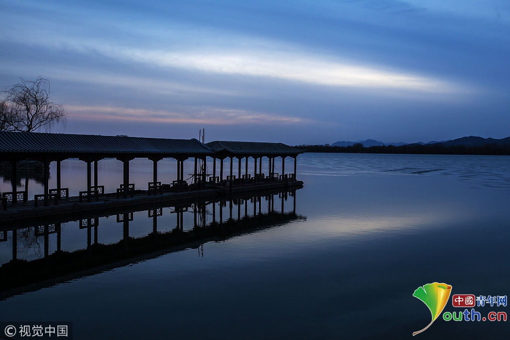 2018年2月23日,北京頤和園。當(dāng)天日落時(shí)分昆明湖上空出現(xiàn)夕陽余暉的美景,夢幻般的色彩將古老的皇家園林裝扮得美輪美奐,讓人流連忘返。 |