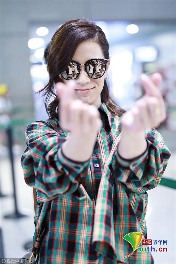 “嫻妃”佘詩(shī)曼花式比心 格紋襯衫燈籠褲顯青春