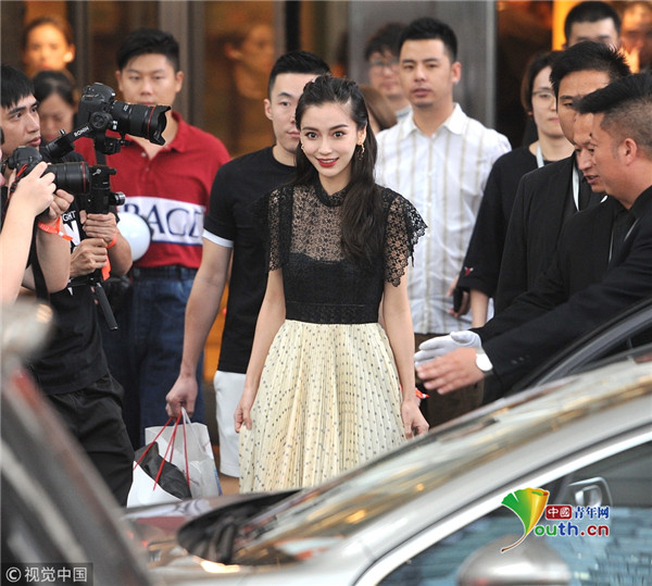 2018年9月6日,上海,Angelababy現(xiàn)身某酒店,她身穿黑色蕾絲薄紗裙小秀性感,走路帶風(fēng)仙氣十足。