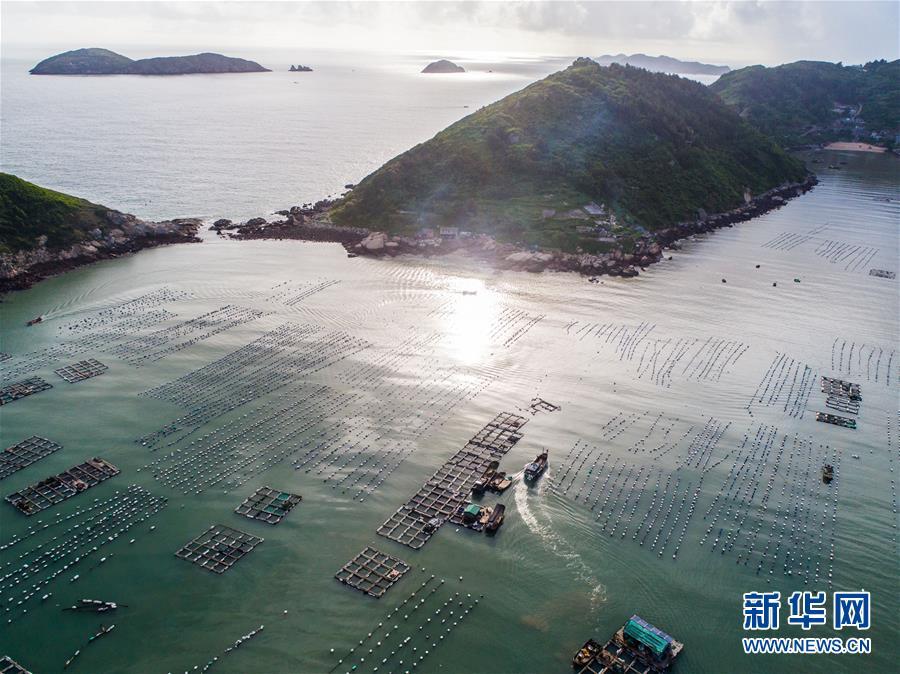 8月19日,空中俯瞰南麂島海域內的“海上牧場”養(yǎng)殖區(qū)(無人機拍攝)。南麂島位于浙江東南海域,水質好,水溫、鹽度都適合大黃魚等養(yǎng)殖魚類的生長繁殖,因此當?shù)氐乃a(chǎn)品也一直保持了較高的品質和口碑。進入8月,浙江省溫州市平陽縣南麂鎮(zhèn)海域上大片的大黃魚、貽貝等特色海產(chǎn)品養(yǎng)殖區(qū)域迎來豐收季節(jié),養(yǎng)殖戶們駕駛漁船在養(yǎng)殖區(qū)海域進行打撈收獲,在碧海藍天下構成了一幅“海上牧場”的美麗豐收景象。近年來,南麂鎮(zhèn)政府引導漁民養(yǎng)殖戶充分發(fā)揮“靠海吃?!钡馁Y源優(yōu)勢,大力發(fā)展海洋養(yǎng)殖經(jīng)濟和海島旅游經(jīng)濟,實現(xiàn)了南麂由“生態(tài)美”向“產(chǎn)業(yè)美”,“產(chǎn)業(yè)美”向“經(jīng)濟美”的轉變。同時該鎮(zhèn)堅持以大黃魚、貽貝等為特色產(chǎn)業(yè)支撐,精準發(fā)展高效海洋養(yǎng)殖業(yè),重點培養(yǎng)一批新型職業(yè)漁民,依靠專業(yè)技術支持,實現(xiàn)深海仿生養(yǎng)殖,讓好生態(tài)造就好品質,重點打造南麂養(yǎng)殖品牌,組建營銷網(wǎng)絡,拓展特色海產(chǎn)品市場。新華社記者 徐昱攝