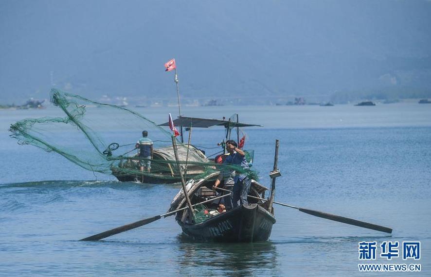 9月18日,漁民在富春江上捕撈江鮮。