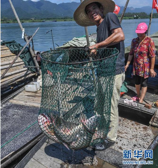 9月18日,漁民展示剛剛捕撈上來的江鮮。