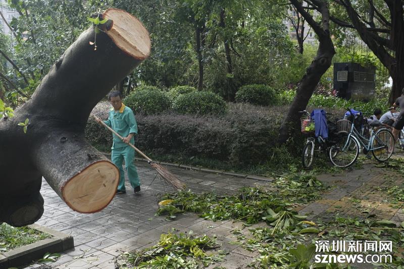 2018年9月17日9點58分,蓮花西地鐵站A出口,一名環(huán)衛(wèi)工人正在清掃路面。(攝影:楊浩翰)