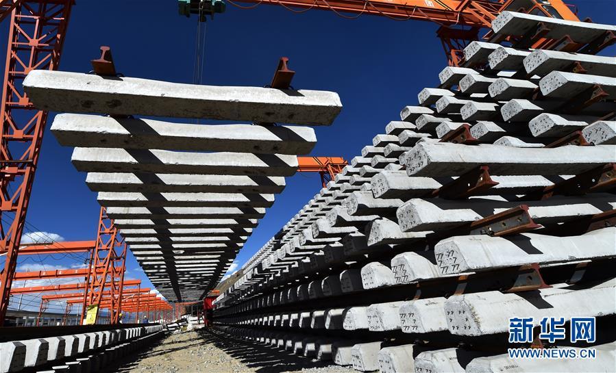 9月19日,在位于西藏拉薩曲水縣的中鐵十一局三公司協(xié)榮鋪架基地,用于架設(shè)川藏鐵路拉薩至林芝段(拉林鐵路)的首批軌排完成生產(chǎn)下線。據(jù)悉,拉林鐵路鋪軌任務(wù)全長400余公里,需要生產(chǎn)軌枕44萬多根。 新華社記者 覺果 攝