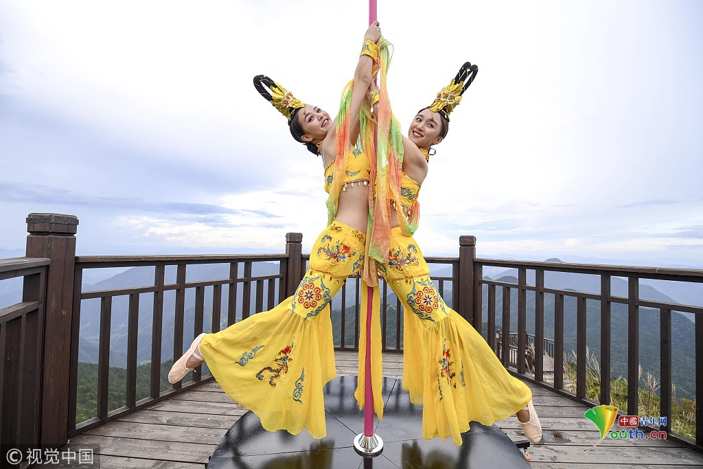 2018年9月20日,中秋節(jié)前夕,位于長(zhǎng)三角第一高峰海拔1929米的浙江龍泉山頂,一場(chǎng)柔美的鋼管舞表演吸引了眾人圍觀。