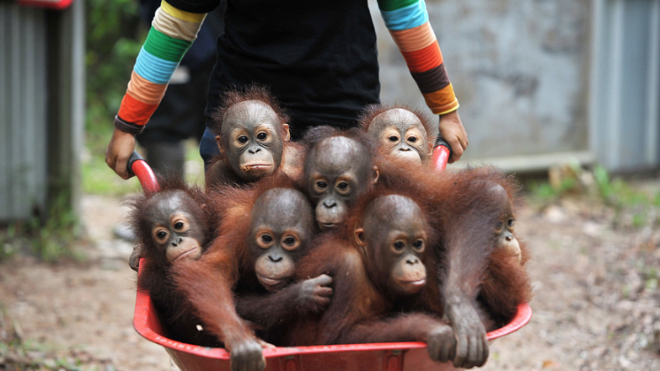猩猩寶寶擠“校車(chē)”“上學(xué)”超萌