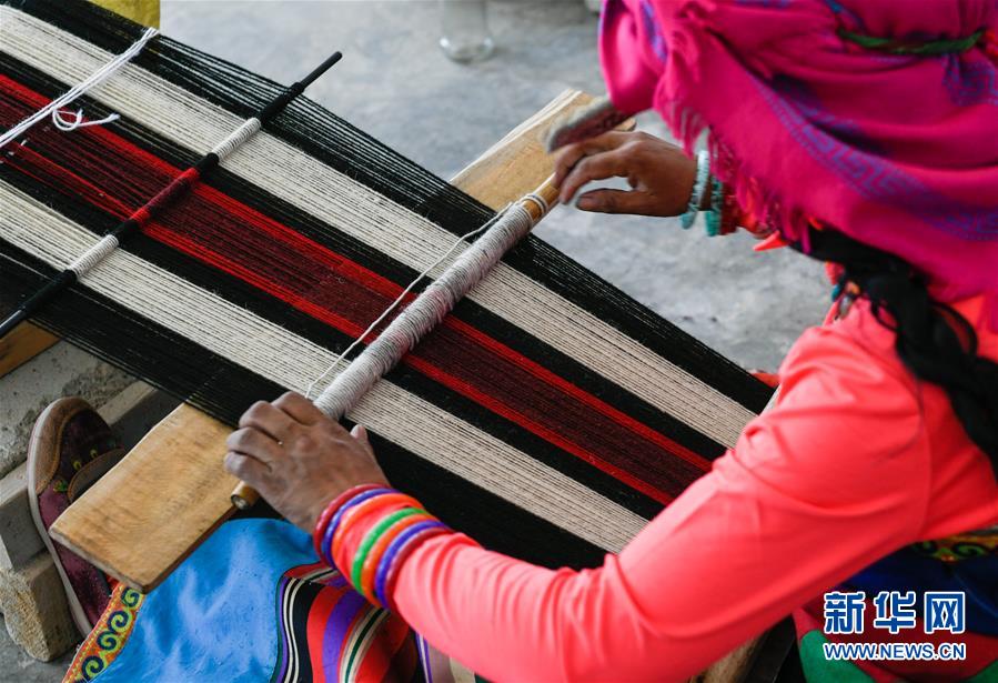 員工在鹽湖鄉(xiāng)羌麥村民族手工編織廠工作(9月19日攝)。 2018年,西藏阿里地區(qū)革吉縣鹽湖鄉(xiāng)政府自籌資金成立羌麥村民族手工編織廠,編織廠將當(dāng)?shù)貍鹘y(tǒng)手工編織技藝與市場需求相結(jié)合,生產(chǎn)手提包、圍脖、腰帶、毛毯、藏式頭巾等產(chǎn)品,并參加旅游推介活動,拓寬編織品銷售渠道,助力當(dāng)?shù)鼐用衩撠殹?新華社記者 劉東君 攝