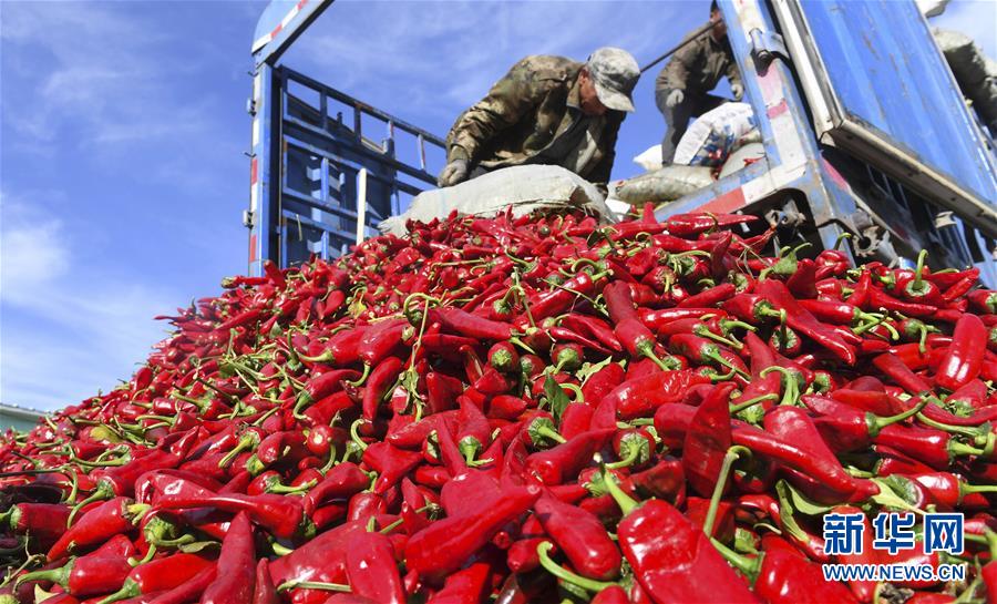 9月16日,阜城縣王集鄉(xiāng)南張莊村農(nóng)民在搬運(yùn)采摘的辣椒。近年來,河北省阜城縣王集鄉(xiāng)在推進(jìn)產(chǎn)業(yè)富民過程中,積極引導(dǎo)農(nóng)民調(diào)整農(nóng)業(yè)產(chǎn)業(yè)結(jié)構(gòu),按照品種特色化、種植規(guī)模化、產(chǎn)銷一體化的“公司+基地+農(nóng)戶”的經(jīng)營模式,鼓勵(lì)農(nóng)民發(fā)展特色辣椒種植,推行“訂單種植”模式,開辟出了一條農(nóng)民創(chuàng)收新路徑。目前,阜城縣王集鄉(xiāng)辣椒種植面積3100余畝,每畝年收益2500元以上,帶動(dòng)當(dāng)?shù)剞r(nóng)民實(shí)現(xiàn)增收。新華社記者朱旭東攝