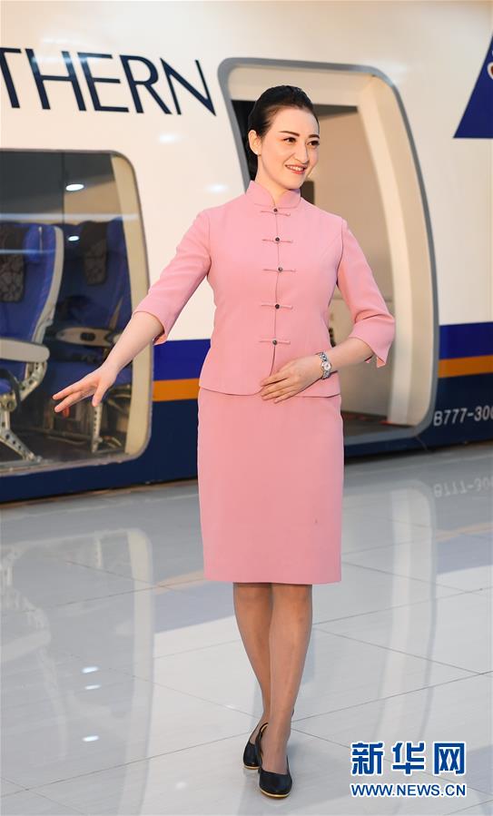 9月26日,中國(guó)南方航空公眾開(kāi)放日活動(dòng)上,空乘展示制服。 新華社記者 鄧華攝