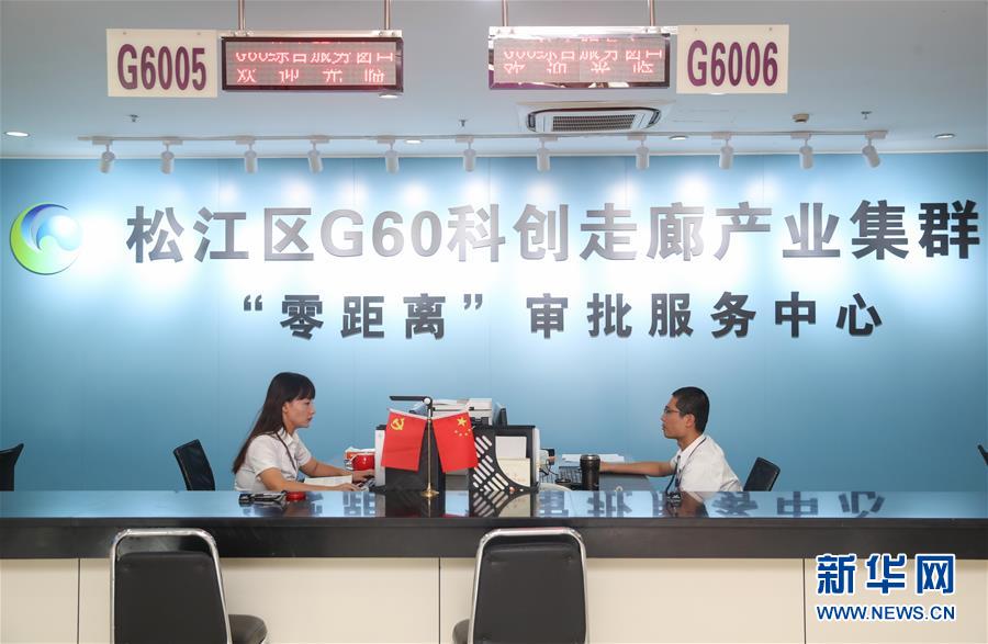 這是上海市松江區(qū)行政服務中心內(nèi)的G60科創(chuàng)走廊產(chǎn)業(yè)集群“零距離”審批服務中心(9月28日攝)。