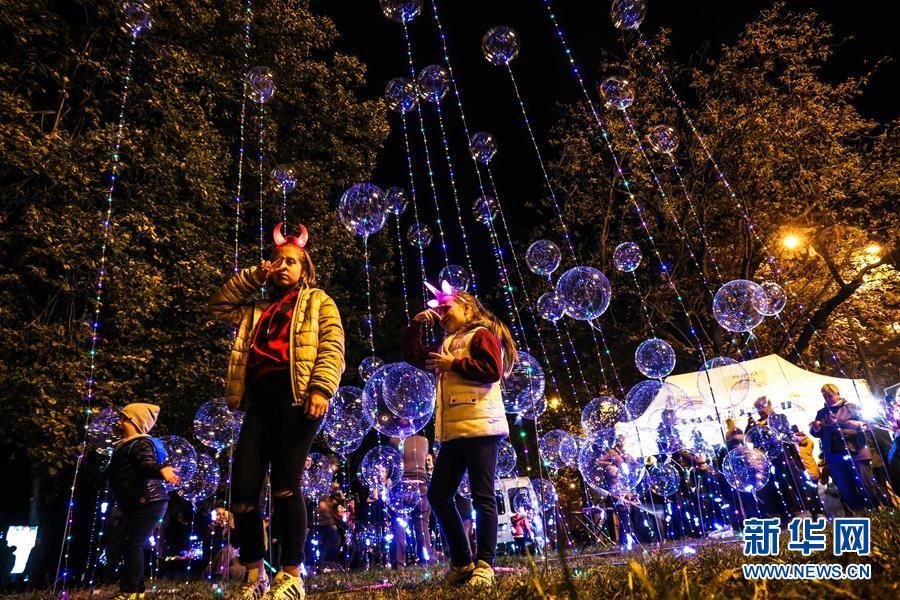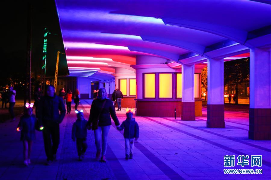 9月28日,游客在波蘭羅茲市中心舉辦的2018“舞動(dòng)”燈光節(jié)上游玩。2018“舞動(dòng)”燈光節(jié)于9月28日至30日在波蘭中部交通樞紐城市——羅茲市舉行,各式各樣的光影表演在這座城市的各個(gè)角落同時(shí)上演,組成了一場(chǎng)如夢(mèng)如幻的大型燈光秀。新華社記者陳序攝