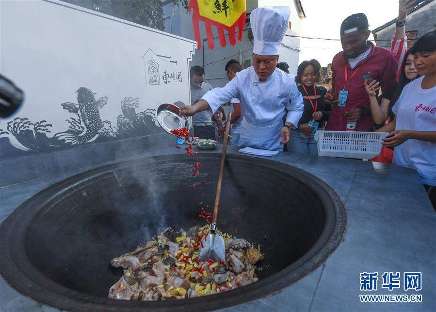 9月30日,廚師在中外游客的圍觀下烹飪“江鮮第一鍋”。當(dāng)日,浙江省杭州市富陽區(qū)場口鎮(zhèn)東梓關(guān)村開啟“江鮮第一鍋”,幾位大廚聯(lián)手在直徑1.5米的大鍋內(nèi)烹制美味江鮮,這也是當(dāng)?shù)亍敖r大會”的重頭戲。東梓關(guān)村有著1000多年歷史,古就是富春江南岸重要的商貿(mào)集散地,素有富春江“東流第一關(guān)”之稱。隨著近年來美麗鄉(xiāng)村建設(shè)的推進,東梓關(guān)村著力打造粉墻黛瓦的江南民居,同時依托富春江豐富的江鮮魚類資源,在秋季舉辦特色“江鮮大會”,通過江鮮捕撈體驗、江鮮第一鍋、百鮮宴、農(nóng)家菜大賽等活動,吸引各地游客前來感受富春江漁民豐收的喜悅和千年古村的獨特魅力,推動鄉(xiāng)村特色旅游發(fā)展。新華社記者徐昱攝