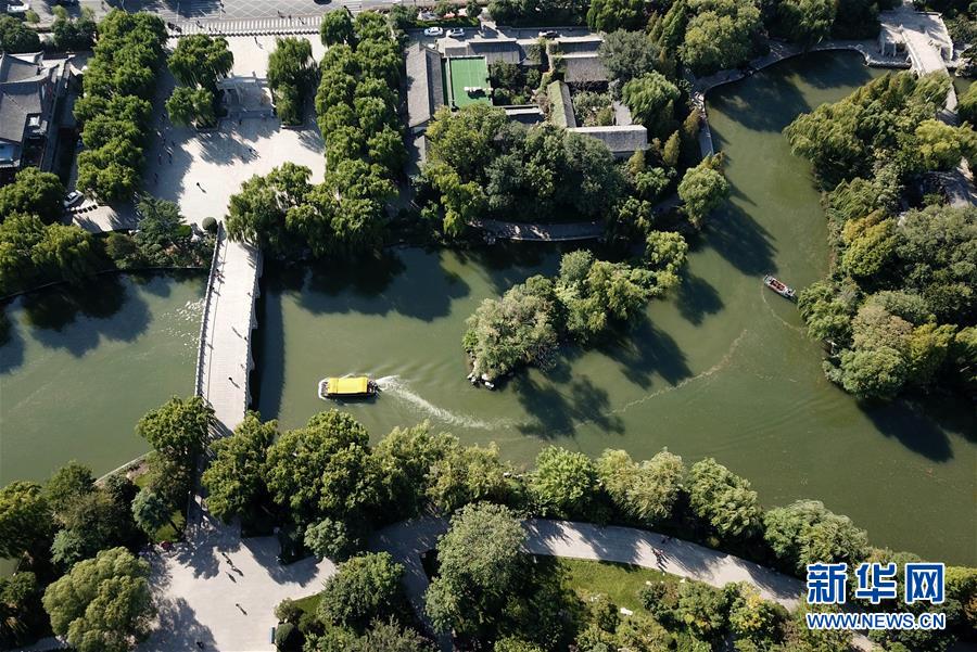 9月30日,游客在免費(fèi)開(kāi)放的濟(jì)南市黑虎泉游覽(無(wú)人機(jī)拍攝)。近年來(lái),山東積極推進(jìn)國(guó)有景區(qū)免費(fèi)開(kāi)放工作,截至目前,山東實(shí)現(xiàn)免費(fèi)開(kāi)放的國(guó)有景區(qū)已達(dá)286處。新華社記者徐速繪攝