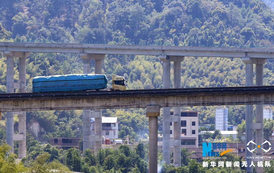 改擴(kuò)建工程最大限度減低了路面坡度。這兩處高架橋在廈蓉高速南靖縣和溪路段,前為一部貨車在長(zhǎng)下坡路段爬坡,后為新建的路段。新華網(wǎng) 肖和勇 攝