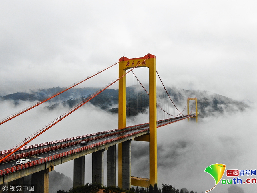 10月9日消息,普立大橋搭建在北盤(pán)江上,連接貴州都格與云南普立,北盤(pán)江兩岸風(fēng)光十分秀美,兩省雖然沒(méi)有開(kāi)發(fā)專門(mén)的旅游線路和風(fēng)景區(qū)推薦,可是秀麗的喀斯特風(fēng)光總吸引一些專門(mén)尋找原生態(tài)自然風(fēng)光的游客。圖片來(lái)源:視覺(jué)中國(guó)