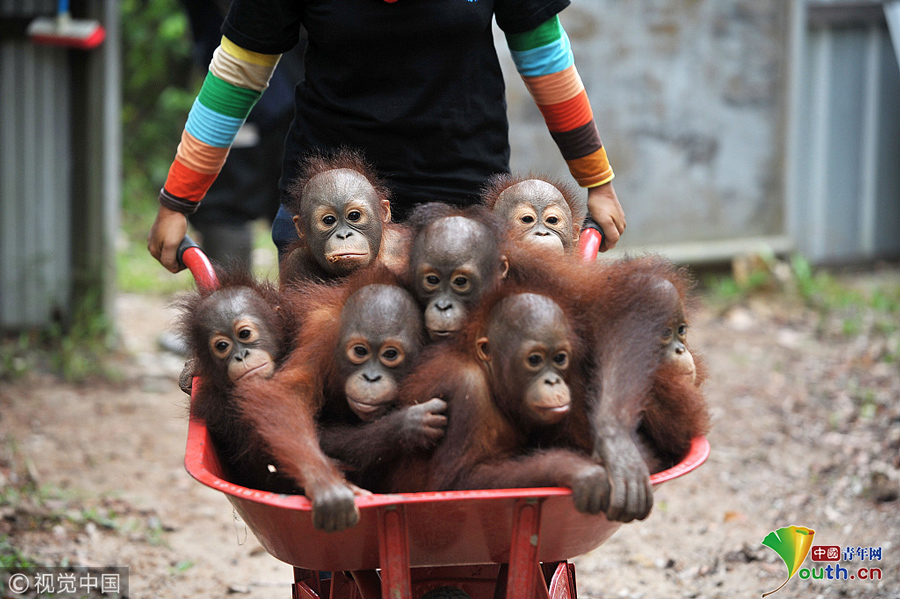 當(dāng)?shù)貢r間2018年9月18日,印尼加里曼丹克塔邦,國際動物救援(IAR)猩猩安全與保護中心里。圖片作者:Newscom