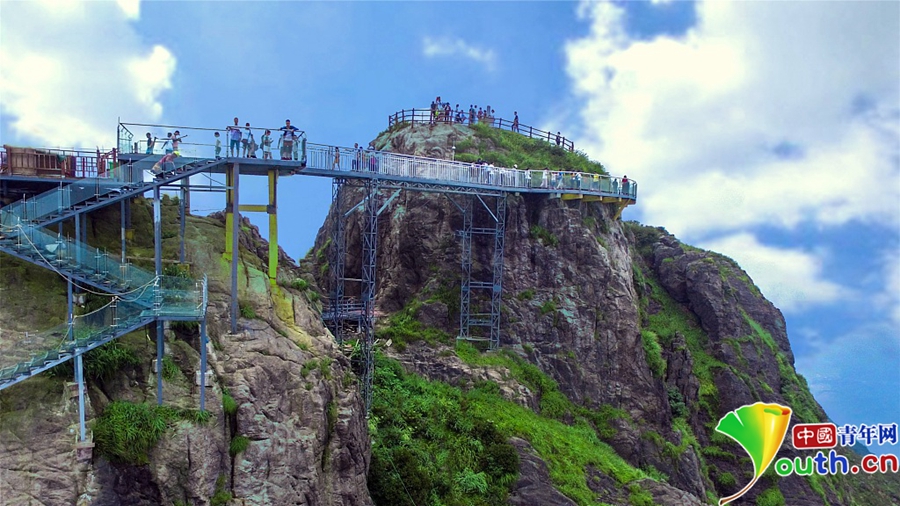 經(jīng)過(guò)一年的建設(shè),位于素有“嶺南第一險(xiǎn)峰”與“南粵小華山”之稱的廣東清遠(yuǎn)連山金子山,有一條玻璃天梯建成。下個(gè)月10日,玻璃天梯將正式對(duì)游客開(kāi)放。