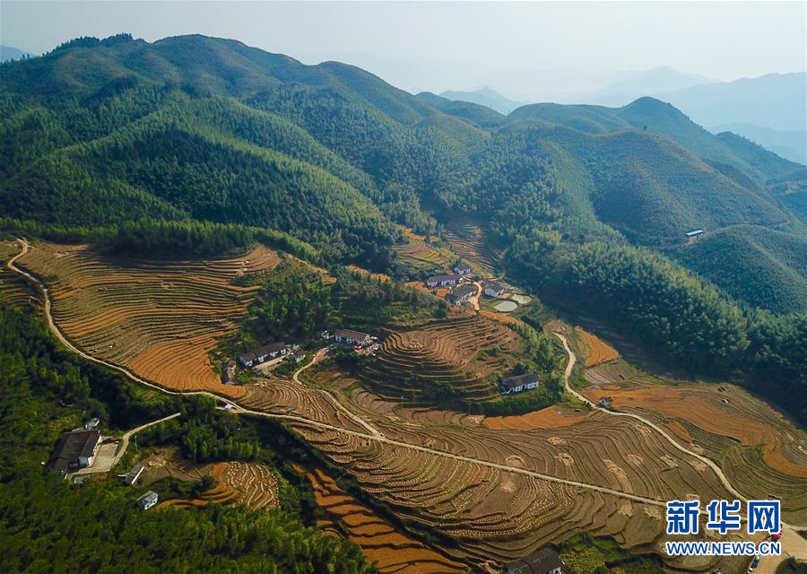 這是上堡鄉(xiāng)的高山梯田(10月9日無人機(jī)拍攝)。 新華社記者 胡晨歡 攝
