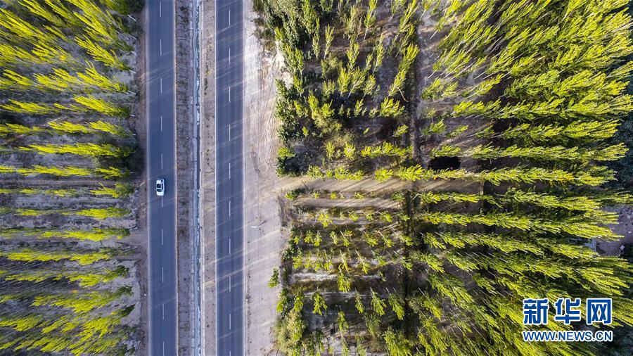 車(chē)輛行駛在新疆阿克蘇地區(qū)柯柯牙綠化工程核心區(qū)(9月20日無(wú)人機(jī)拍攝)。 在世界第二大流動(dòng)性沙漠——塔克拉瑪干沙漠西北邊,一條逾百萬(wàn)畝的人工林帶傲然挺立。 這條林帶就是柯柯牙荒漠綠化工程。它是新疆阿克蘇黃沙漫漫和碧波萬(wàn)頃的分界嶺。 1986年,為改變惡劣的自然條件,阿克蘇啟動(dòng)柯柯牙綠化工程。30年間,各族干部群眾攜手奮斗,曾是沙塵暴策源地的柯柯牙綠樹(shù)成蔭;并以此為原點(diǎn),在南疆戈壁荒灘上孕育出百萬(wàn)畝的“綠海”。 30多年來(lái),阿克蘇打造出“人走政不息”的樣本,使綠色發(fā)展理念成為幾代人的廣泛共識(shí);“自力更生、艱苦奮斗、無(wú)私奉獻(xiàn)”的柯柯牙精神,已融入各族兒女血液中;“以林養(yǎng)林”“邊綠化邊脫貧”的綠化、脫貧方式,給其他荒漠地區(qū)貢獻(xiàn)了“柯柯牙智慧”。 新華社記者 胡虎虎 攝