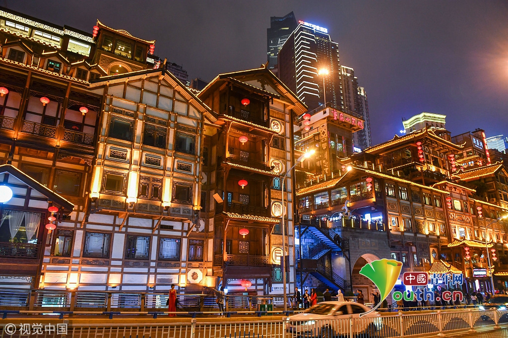 洪崖洞耀眼的燈光。