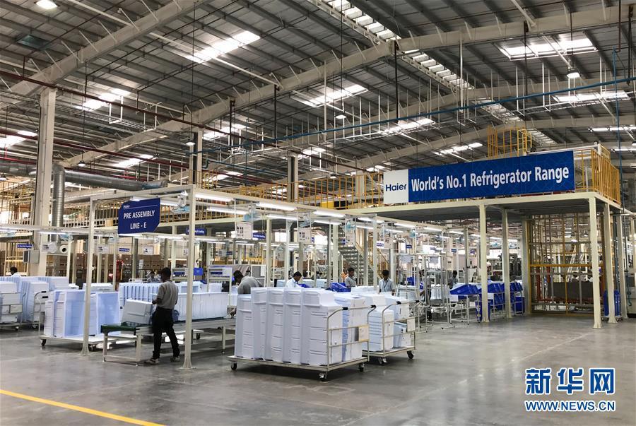 2017年11月16日,工人在位于印度馬哈拉施特拉邦浦那市的中國海爾集團工業(yè)園廠房內(nèi)工作。