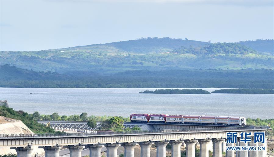 2017年5月29日,一列肯尼亞蒙內(nèi)鐵路測試列車行駛在蒙巴薩特大橋上。由中國承建的蒙巴薩-內(nèi)羅畢標軌鐵路(蒙內(nèi)鐵路)全長約480公里,于2017年5月通車。