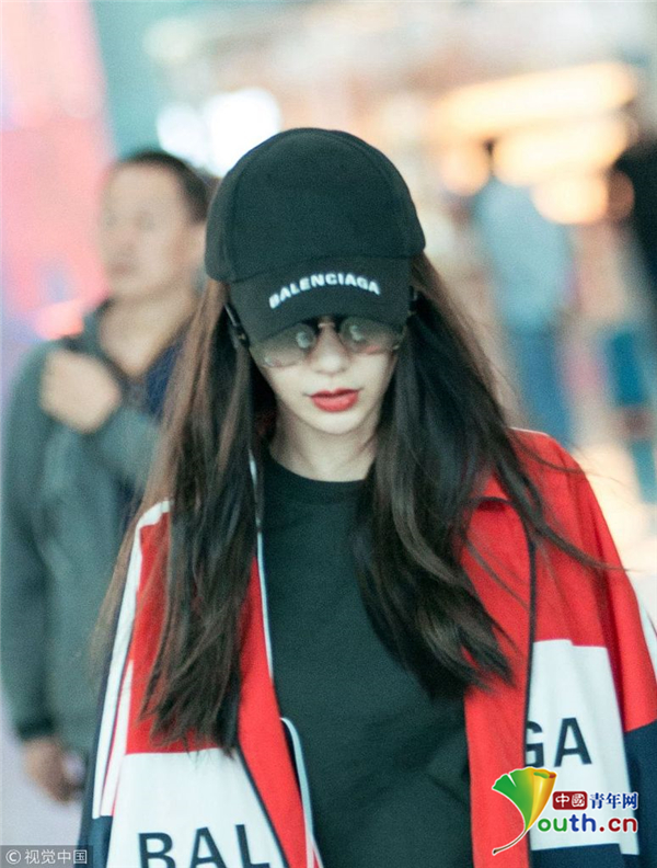 2018年10月11日,深圳,Angelababy現身深圳機場,頭戴鴨舌帽的她露出半張小臉紅唇嬌艷,一身休閑裝扮時尚靚麗,手中的大包與她纖瘦的身材形成鮮明對比,十分搶鏡,在上身的寬大運動衣襯托下,套著緊身褲的雙腿更顯細長。
