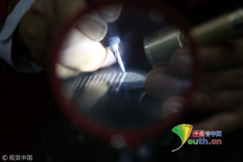 黑陶鼎上有《論語》《道德經(jīng)》等作品,1個(gè)字不到1毫米,用放大鏡才能看清。