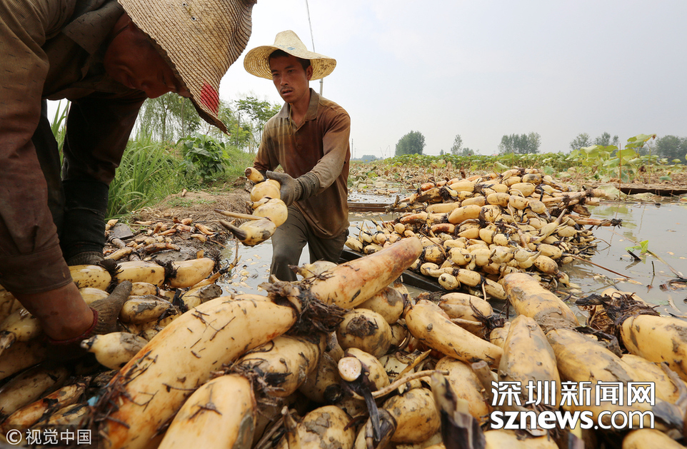 藕農(nóng)泥中“掘金” 初秋時節(jié)采藕忙