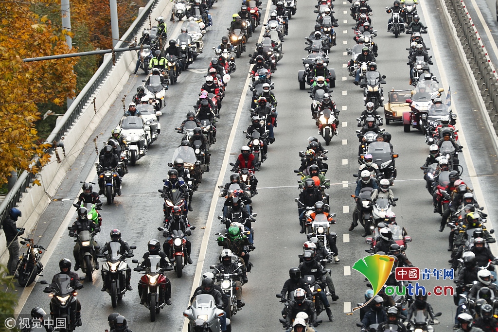 莫斯科舉行摩托車游行,重機(jī)集體上路超炫酷。