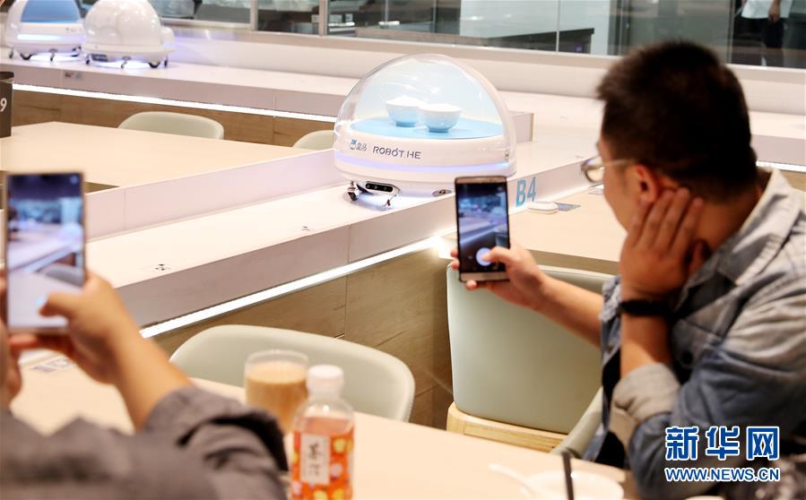 近日,一家由機(jī)器人充當(dāng)送餐服務(wù)員的盒馬機(jī)器人餐廳現(xiàn)身上海國家會展中心,為顧客帶來一種用餐新選擇。