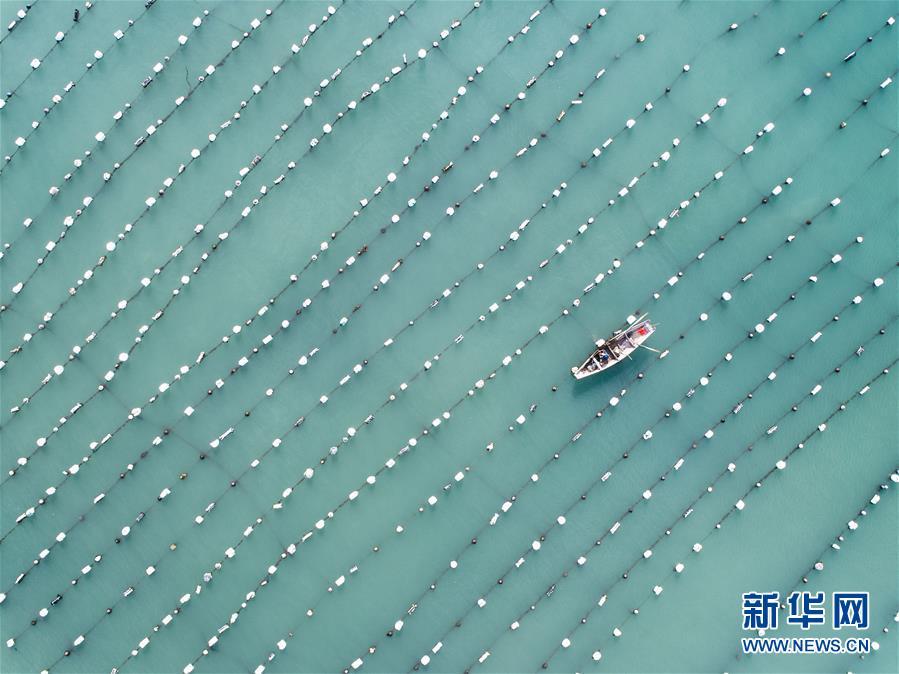 8月18日,南麂島馬祖岙海灣內(nèi),養(yǎng)殖戶(hù)乘船在貽貝養(yǎng)殖區(qū)內(nèi)作業(yè)(無(wú)人機(jī)拍攝)。進(jìn)入8月,浙江省溫州市平陽(yáng)縣南麂鎮(zhèn)海域上大片的大黃魚(yú)、貽貝等特色海產(chǎn)品養(yǎng)殖區(qū)域迎來(lái)豐收季節(jié),養(yǎng)殖戶(hù)們駕駛漁船在養(yǎng)殖區(qū)海域進(jìn)行打撈收獲,在碧海藍(lán)天下構(gòu)成了一幅“海上牧場(chǎng)”的美麗豐收景象。近年來(lái),南麂鎮(zhèn)政府引導(dǎo)漁民養(yǎng)殖戶(hù)充分發(fā)揮“靠海吃?!钡馁Y源優(yōu)勢(shì),大力發(fā)展海洋養(yǎng)殖經(jīng)濟(jì)和海島旅游經(jīng)濟(jì),實(shí)現(xiàn)了南麂由“生態(tài)美”向“產(chǎn)業(yè)美”,“產(chǎn)業(yè)美”向“經(jīng)濟(jì)美”的轉(zhuǎn)變。同時(shí)該鎮(zhèn)堅(jiān)持以大黃魚(yú)、貽貝等為特色產(chǎn)業(yè)支撐,精準(zhǔn)發(fā)展高效海洋養(yǎng)殖業(yè),重點(diǎn)培養(yǎng)一批新型職業(yè)漁民,依靠專(zhuān)業(yè)技術(shù)支持,實(shí)現(xiàn)深海仿生養(yǎng)殖,讓好生態(tài)造就好品質(zhì),重點(diǎn)打造南麂養(yǎng)殖品牌,組建營(yíng)銷(xiāo)網(wǎng)絡(luò),拓展特色海產(chǎn)品市場(chǎng)。新華社記者 徐昱攝