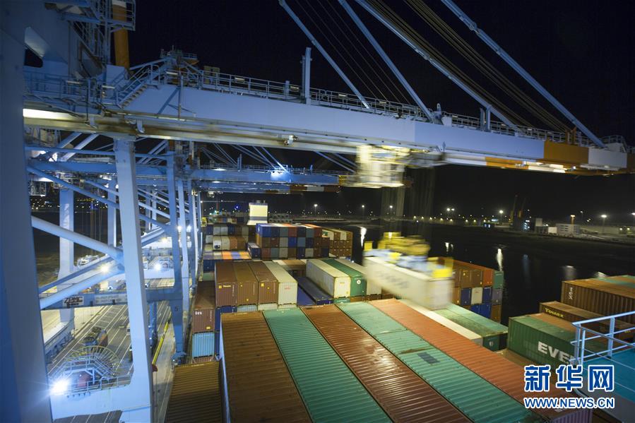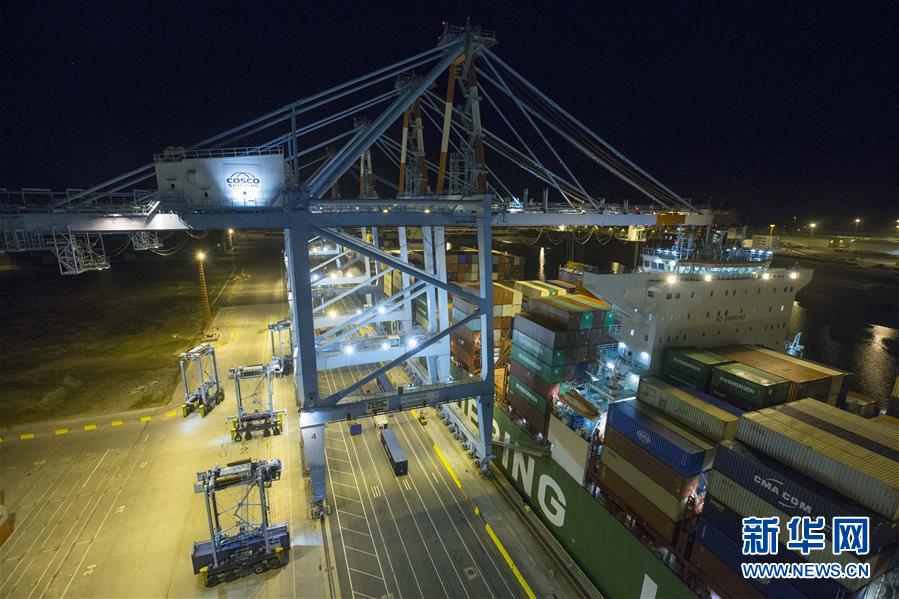 這是10月15日晚在比利時澤布呂赫港拍攝的正在進(jìn)行裝卸作業(yè)的集裝箱碼頭。新華社記者 葉平凡 攝