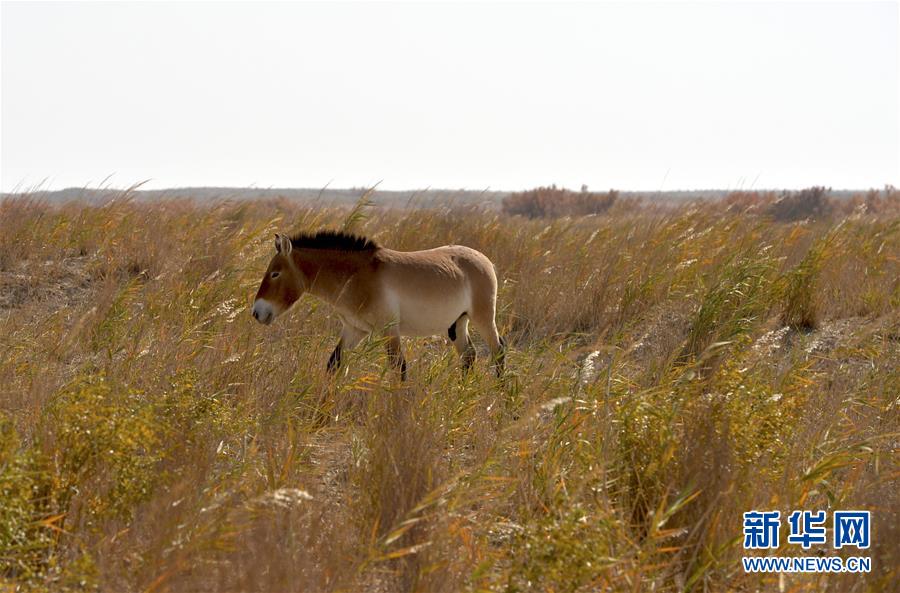 這是10月16日在敦煌西湖國家級(jí)自然保護(hù)區(qū)拍攝的普氏野馬。