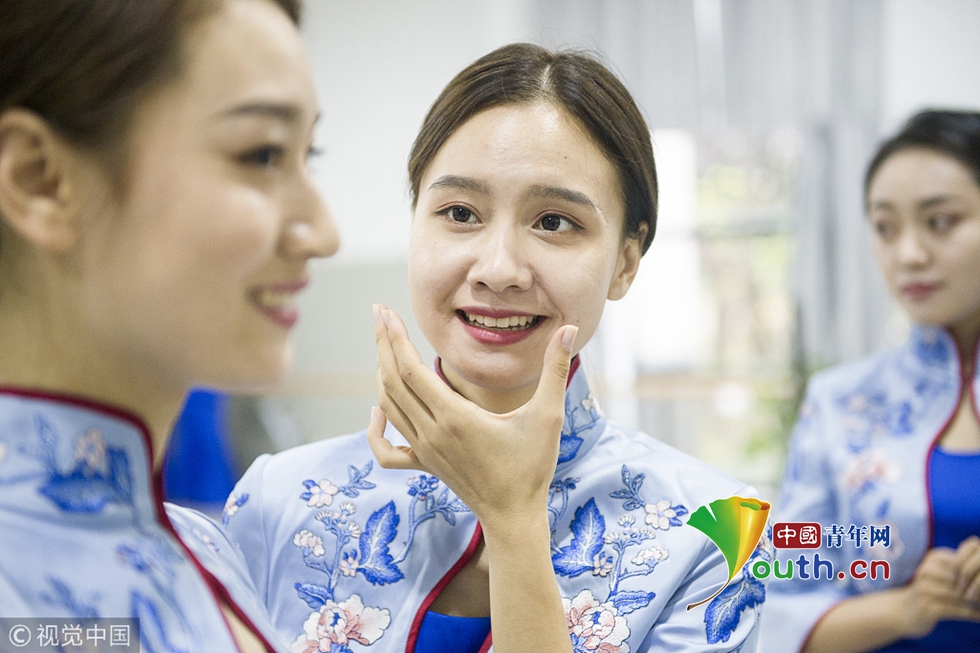 來自浙江傳媒學(xué)院的禮儀志愿者們正在進行緊張有序的集中訓(xùn)練。圖片作者:浙江日報 馮賀/視覺中國