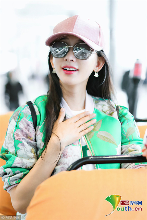 2018年10月16日,上海,林志玲亮相機(jī)場,她身穿綠色印花外套搭配粉色鴨舌帽十分清新靚麗,乖乖坐小車抿嘴甜笑比V嘟嘴頻賣萌。