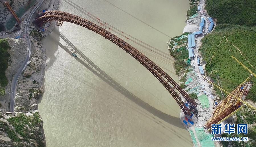 9月28日無人機拍攝的川藏鐵路拉林段重點標志性工程藏木特大橋。 當日,隨著最后一節(jié)鋼管拱的對位和鎖定完畢,川藏鐵路拉林段藏木特大橋成功合龍,標志著大橋主體結(jié)構(gòu)施工取得了關(guān)鍵性勝利。藏木特大橋由中國中鐵廣州局集團承建,拱高112米,橋橫跨雅魯藏布江峽谷,水深66米。 新華社記者普布扎西攝