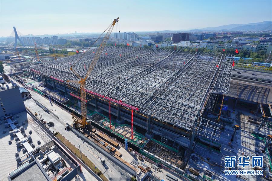 10月17日拍攝的建設中的清河站。當日,京張高鐵新建車站——清河站主體結構正式封頂。清河站是京張高鐵建筑面積最大的車站,同時也是京張高鐵在北京地區(qū)的始發(fā)站之一。 新華社發(fā)(馮凱 攝)