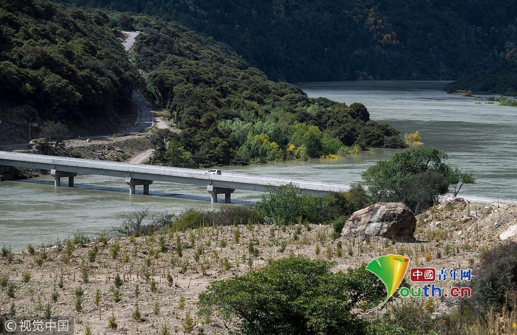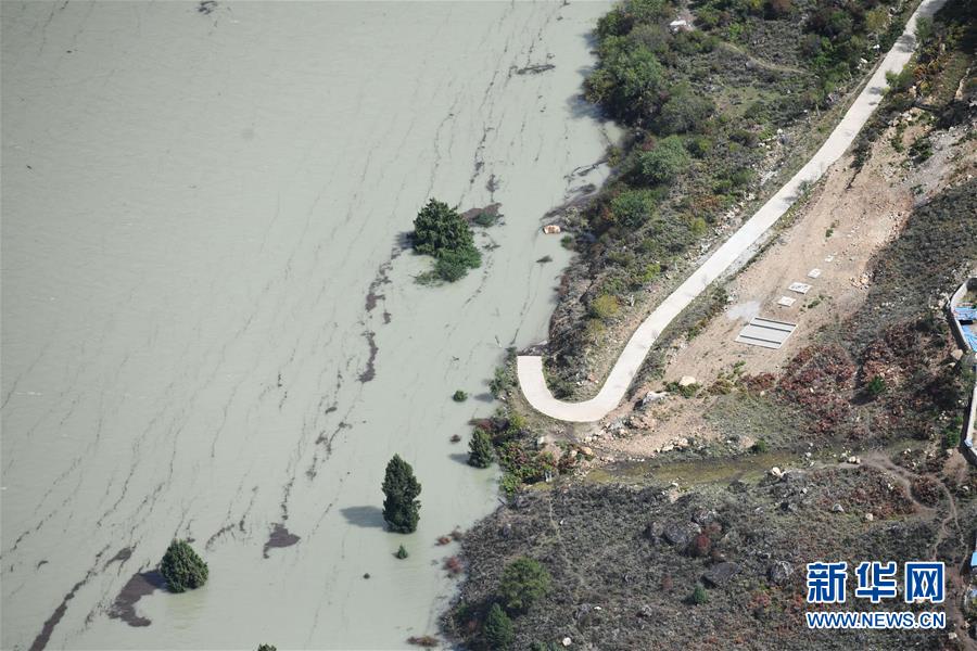 空中俯瞰通往加拉村已淹沒的公路(10月18日攝)。 新華社記者 普布扎西攝