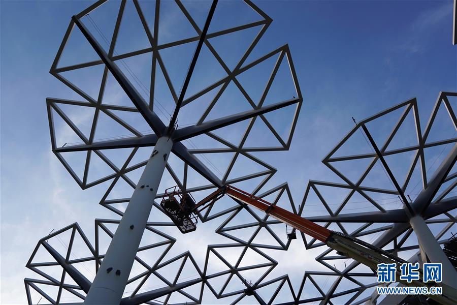 10月18日拍攝的建設(shè)中的北京世園會(huì)國(guó)際館。新華社記者 鞠煥宗 攝