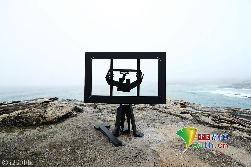 慎點!澳大利亞邦迪海灘雕塑展一幕