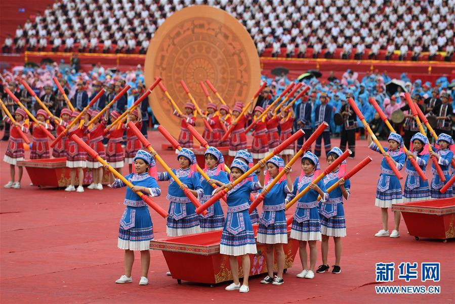 當(dāng)日,廣西大化瑤族自治縣舉行自治縣成立30周年慶祝大會,當(dāng)?shù)馗髯逋d歌載舞慶縣慶。