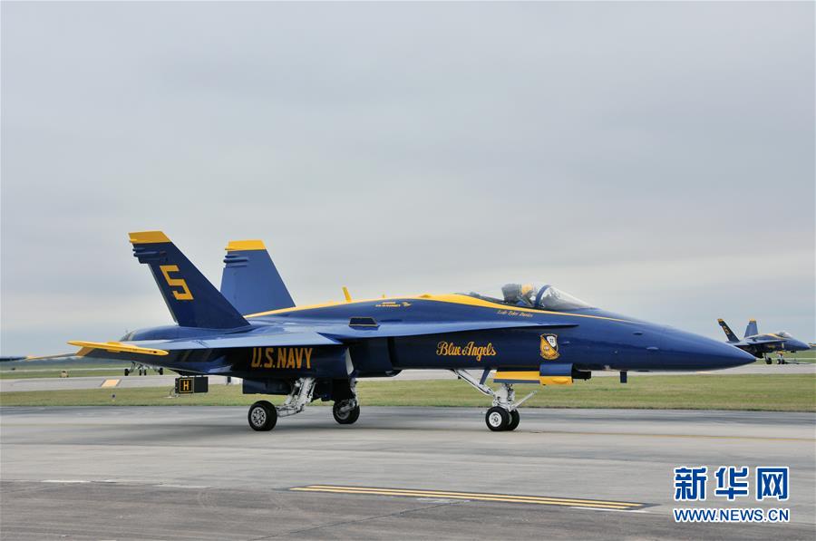 10月20日,在美國休斯敦,一架美國海軍“藍(lán)天使”飛行表演隊的飛機(jī)準(zhǔn)備起飛。