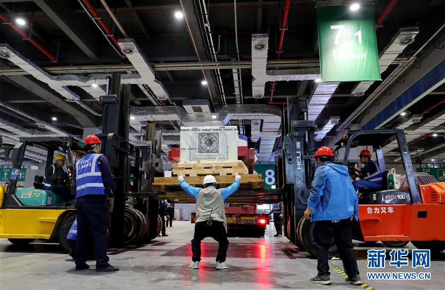 10月22日,現(xiàn)場工人動用四臺叉車同時作業(yè),將“金牛座”龍門銑床核心部件溜板滑枕抬起后等待卡車就位裝車。 當(dāng)日,來自德國的首屆進(jìn)口博覽會最大展品——“金牛座”龍門銑床完成初步組裝,將運(yùn)往國家會展中心(上海)3號館進(jìn)行最后的安裝施工。這是德國瓦德里希科堡公司研發(fā)的機(jī)床設(shè)備,高約8米,占地面積約200平方米,將在智能及高端裝備區(qū)進(jìn)行展出。 新華社記者方喆攝