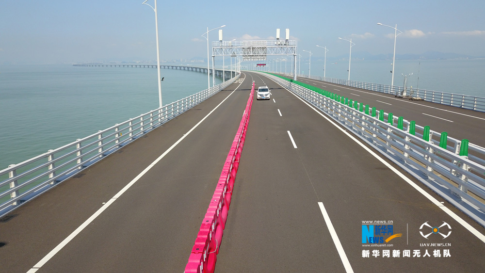圖為新華網(wǎng)無(wú)人機(jī)隊(duì)航拍港珠澳大橋。新華網(wǎng) 黃璐璐 攝