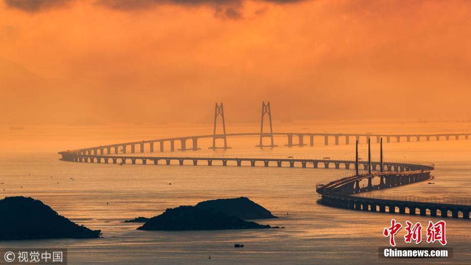 “超級工程”港珠澳大橋?qū)⒂?4日上午9時正式通車,一波美圖先睹為快。黃昆震 攝 圖片來源:視覺中國