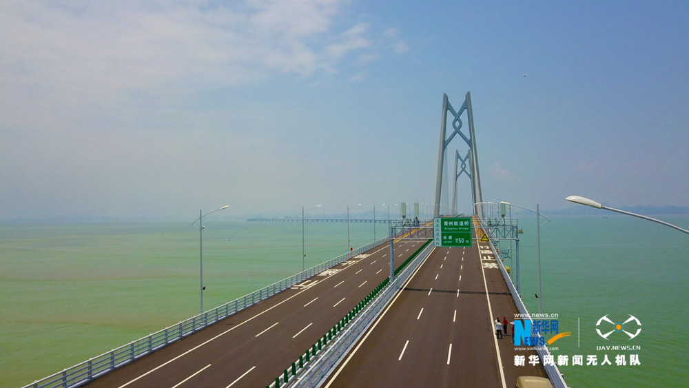 圖為新華網(wǎng)無(wú)人機(jī)隊(duì)航拍港珠澳大橋。新華網(wǎng) 黃璐璐 攝